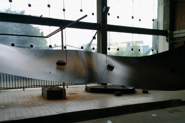 L’installation Tensions dissonantes # de Mathias Isouard met en suspension une fine plaque d’aluminium de 6 mètres de longueur sur 1 mètre 50 de largeur. Quatre Haut-parleurs vibreurs (transducteurs) y sont fichés et y diffusent quatre séquences sonore qui mettent en vibration et en mouvement la tôle métallique.